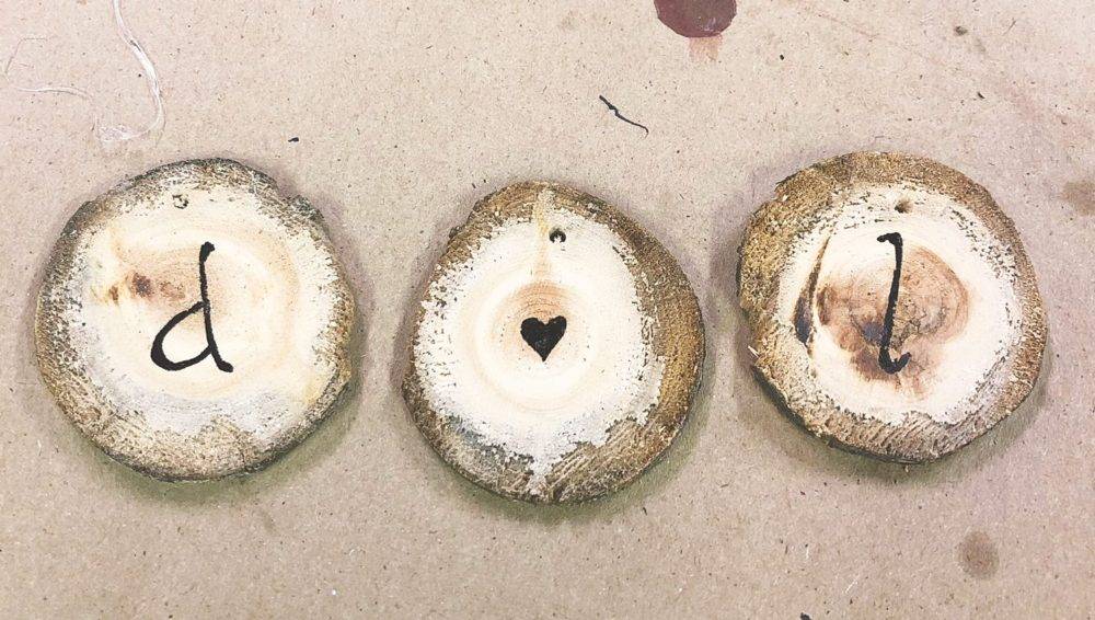 My final addition to the Love Bundle was to include three wood rounds. I wanted to play with the idea of carving our names in a tree so I came up with “d” <3 “l” or in other words, Dana loves Luis. Yes, I’m a cheesy romantic.