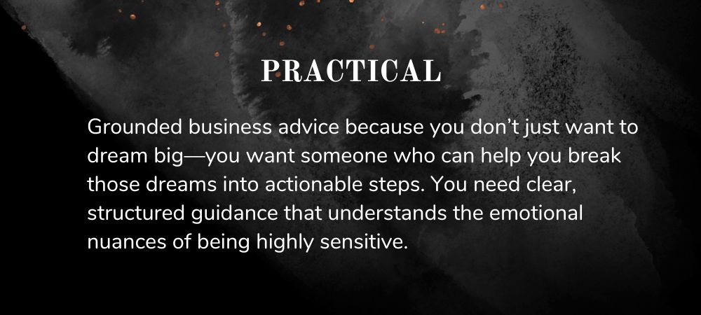 In this group, we do the inner work we need to do to move our business forward but I also support you with the gifts that come with my highly sensitive nature.