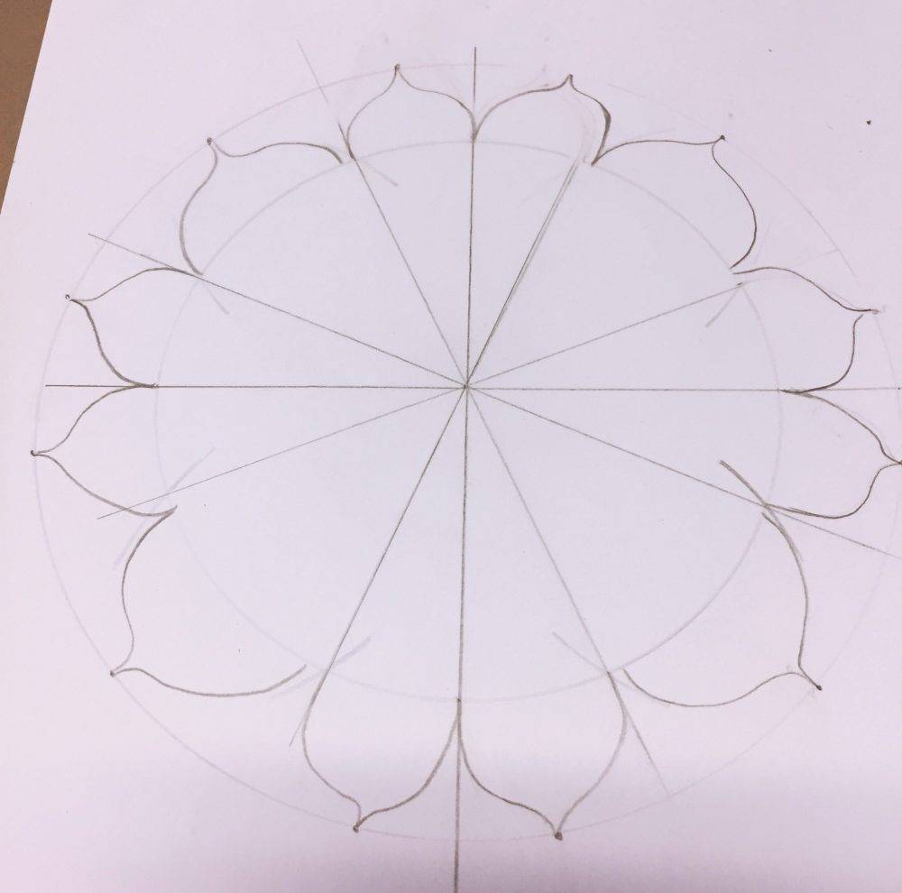 - Repeat the process for the remaining eleven petals on the mandala.
