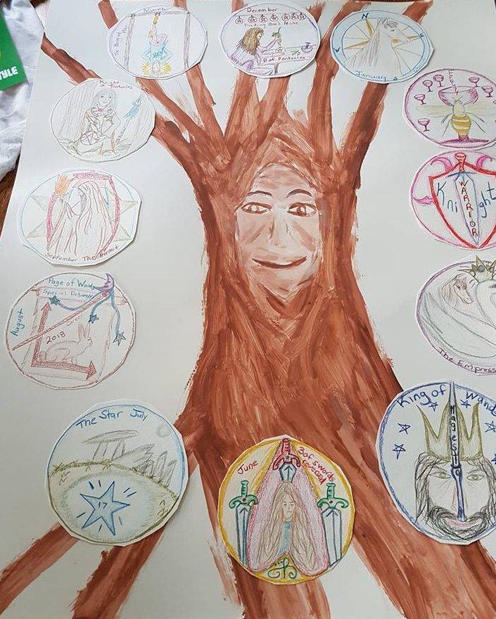 The first showcases the tarot cards she pulled for each month.