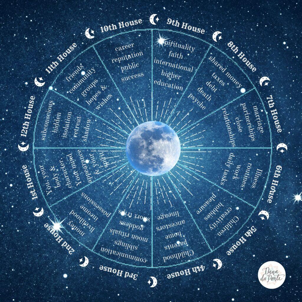 There are twelve houses and each house will be occupied by a different zodiac sign depending on which zodiac sign is in your first house.