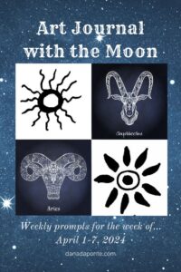 In this post, I share how to practice solar eclipse magic in your art journal. Scroll down further and you will also see a summary of the moon’s energy from Monday – Sunday with daily prompts you can explore in your art journal so your deep inner work and magic is in alignment with the moon.