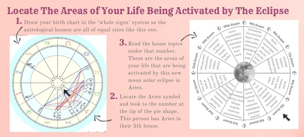 As you can see, by identifying the house where Aries is located in your chart, you can pinpoint the specific life areas the current eclipse energies are activating for you personally.