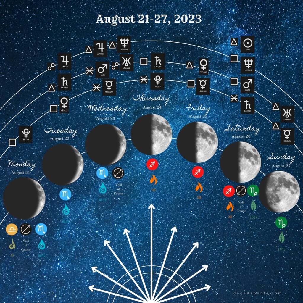 Every week the emotional and magical opportunities the moon is sending you are different because the energy she is drawing down from the planets and stars changes moment to moment. Planets and stars and moon phases and moon signs each carry their own unique energy. This is my weekly update of the moon’s comings and goings to support you in aligning with her energy.