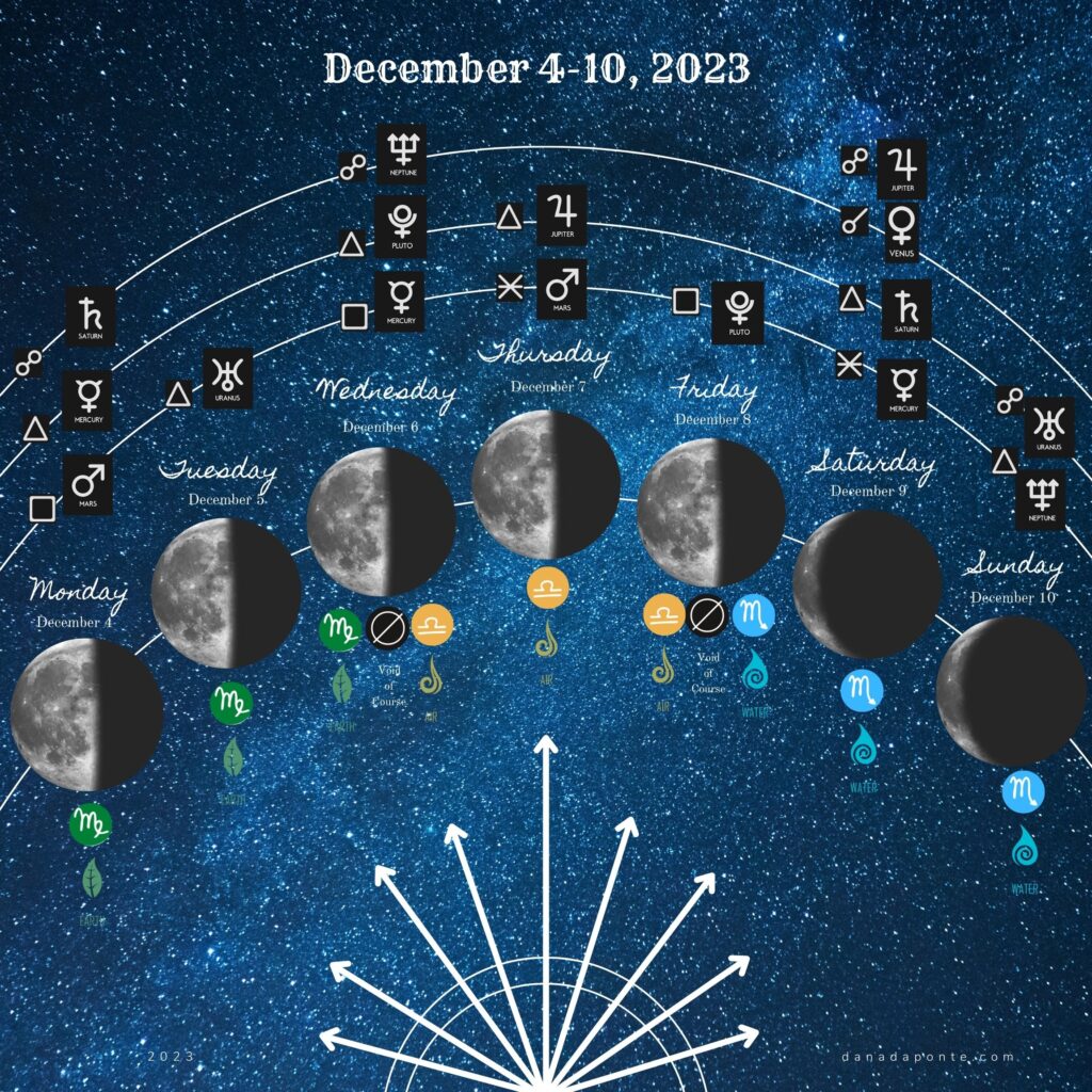 Every week the emotional and magical opportunities the moon is sending you are different because the energy she is drawing down from the planets and stars changes moment to moment. Planets and stars and moon phases and moon signs each carry their own unique energy. This is my weekly update of the moon’s comings and goings to support you in aligning with her energy.