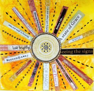 To work with this Full Moon in your art journal, create a sun with beams of light shining out.