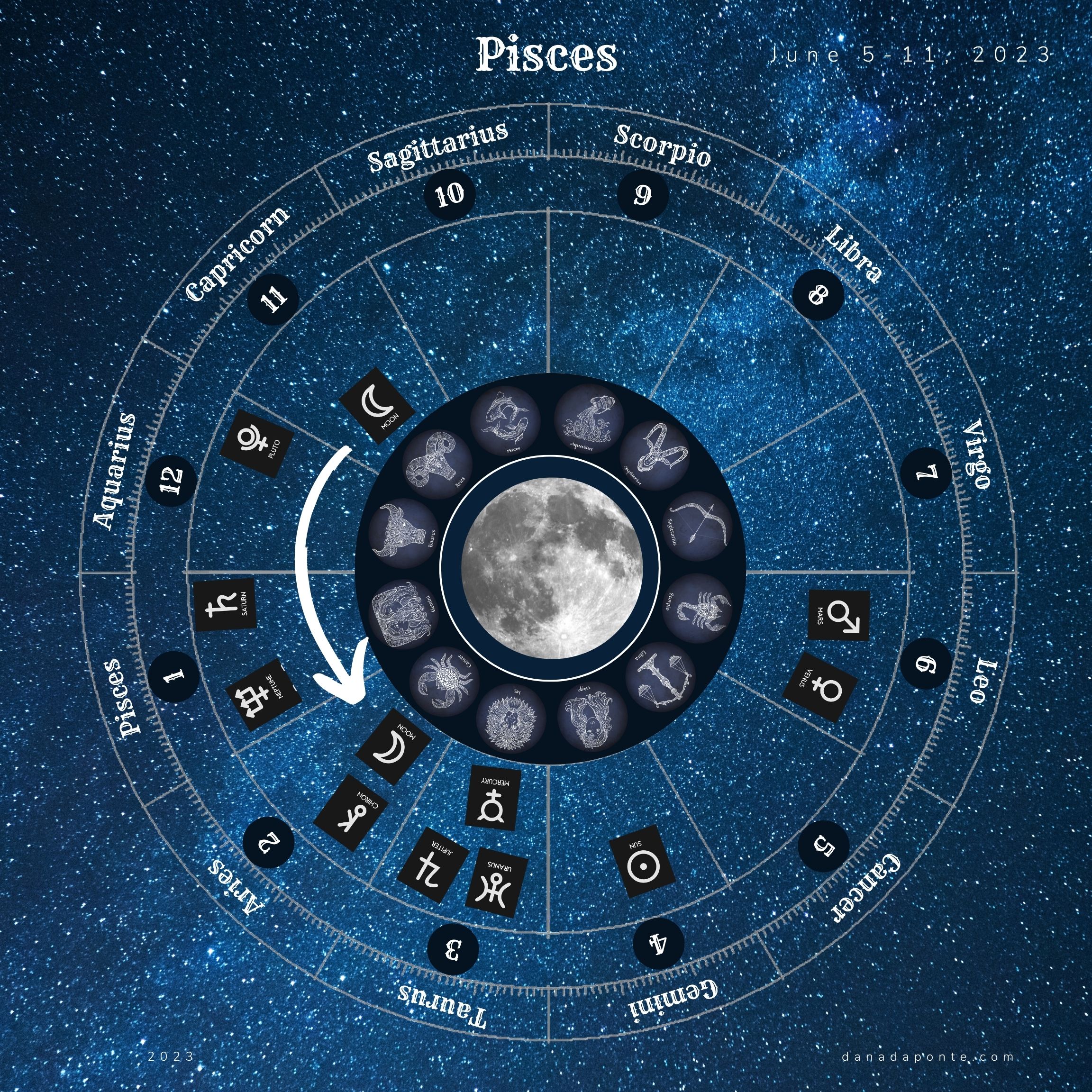 The moon moves into the sign of Pisces today.