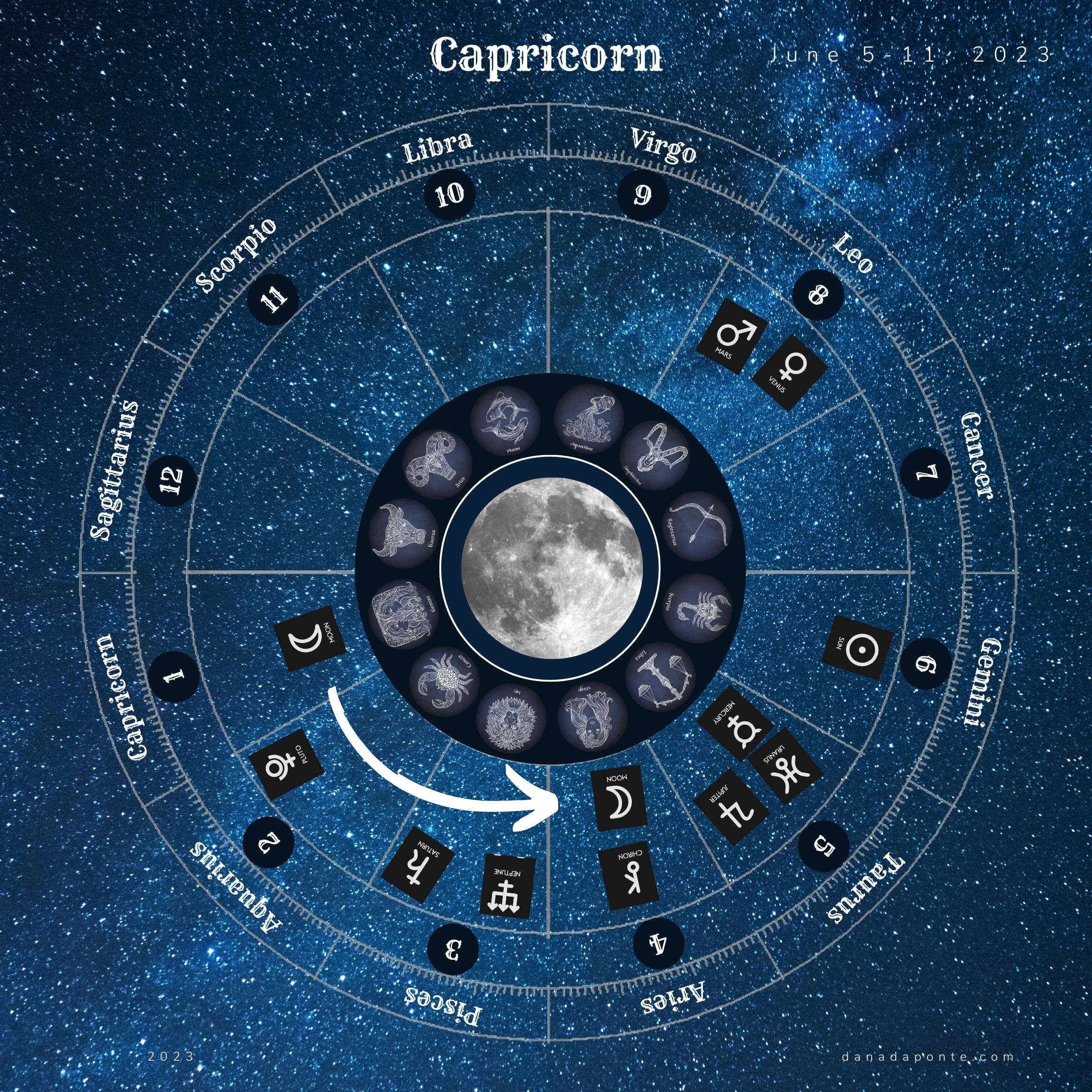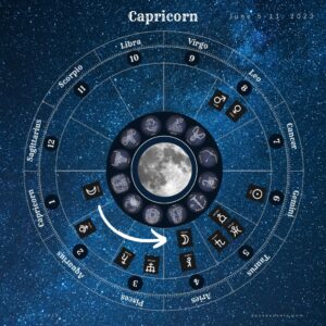 Capricorn is ruled by Saturn so the moon is carrying a little of that planet’s energy as well Saturn brings wisdom about time, endings, limits, responsibility and maturity. Capricorn also carries the energy of our ancestors. Some of the archetypes associated with Capricorn include the Crone and Hecate.