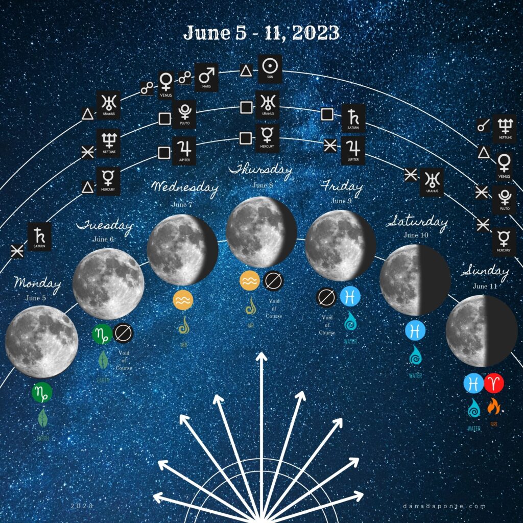 Every week the emotional and magical opportunities the moon is sending you are different because the energy she is drawing down from the planets and stars changes moment to moment. Planets and stars and moon phases and moon signs each carry their own unique energy .This is my weekly update (Mon-Fri) of the moon’s comings and goings to support you in aligning with her energy.