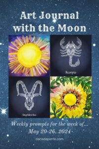 If you want to work with the moon to manifest, do your emotional work or deepen your creativity, here’s a summary of the moon’s energy from Monday – Sunday with daily prompts you can explore in your art journal.