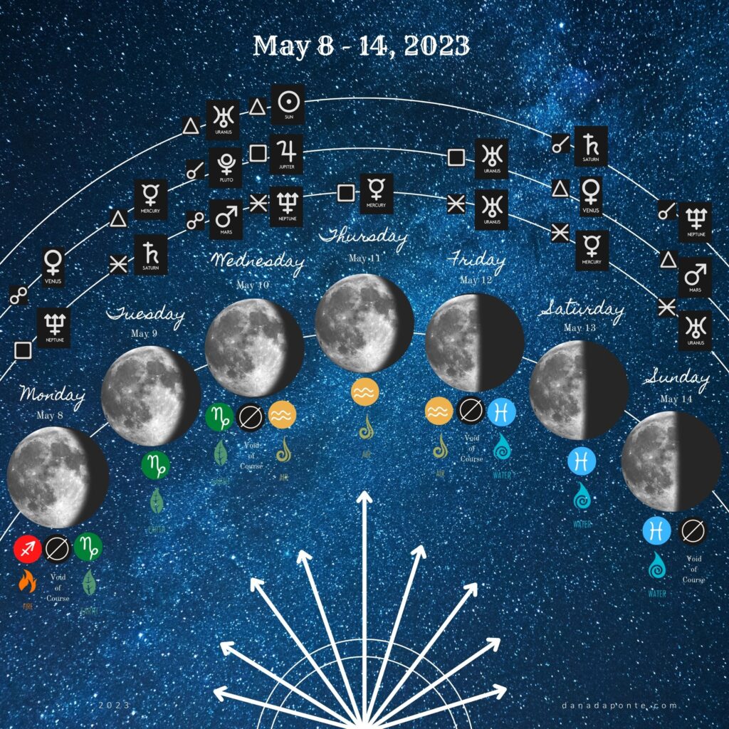 Every week the emotional and magical opportunities the moon is sending you are different because the energy she is drawing down from the planets and stars changes moment to moment. Planets and stars and moon phases and moon signs each carry their own unique energy .This is my weekly update (Mon-Fri) of the moon’s comings and goings to support you in aligning with her energy.