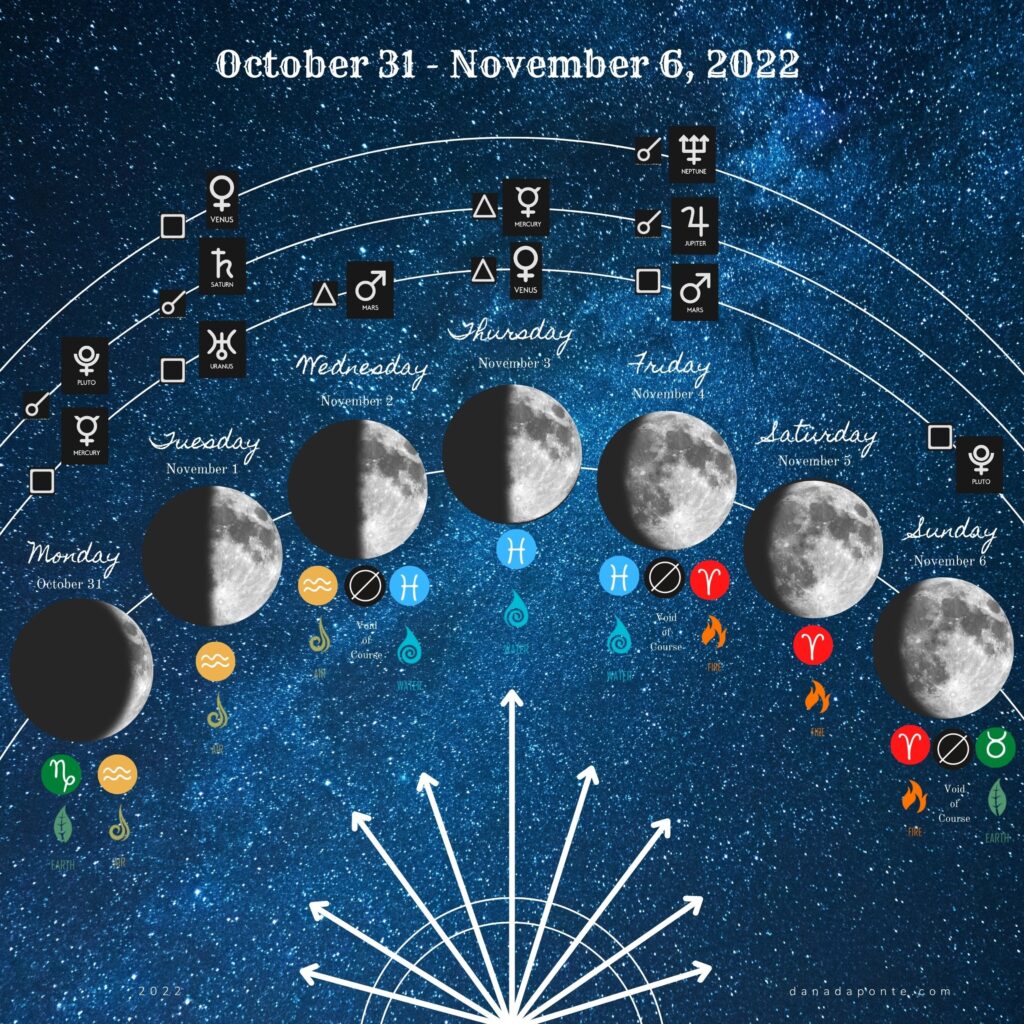 Every week the emotional and magical opportunities the moon is sending you are different because the energy she is drawing down from the planets and stars changes moment to moment. Planets and stars and moon phases and moon signs each carry their own unique energy .This is my weekly update (Mon-Fri) of the moon’s comings and goings to support you in aligning with her energy.