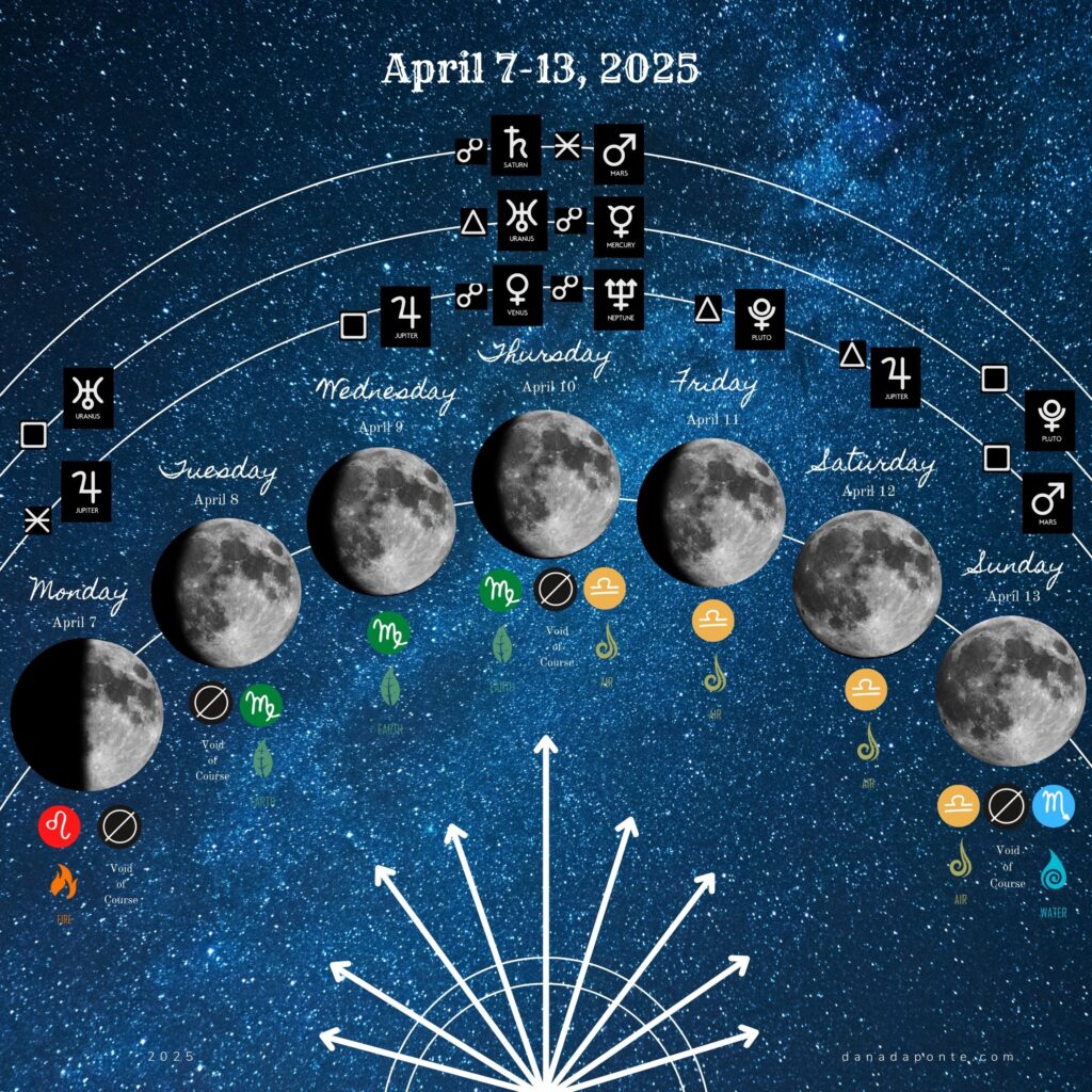 In this post, I share a summary of the moon for the week of April 7-13, 2025 as it moves through the zodiac and interacts with the planets. I also talk about working with Goddess energy to grow your business or heal your relationships.