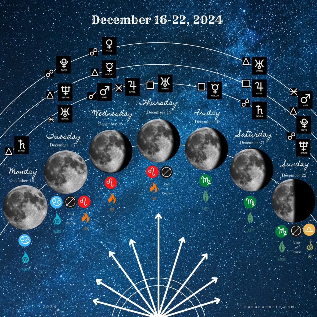 In this post, I share a summary of the moon for the week of December 16-22, 2024 as it moves through the zodiac and interacts with the planets.