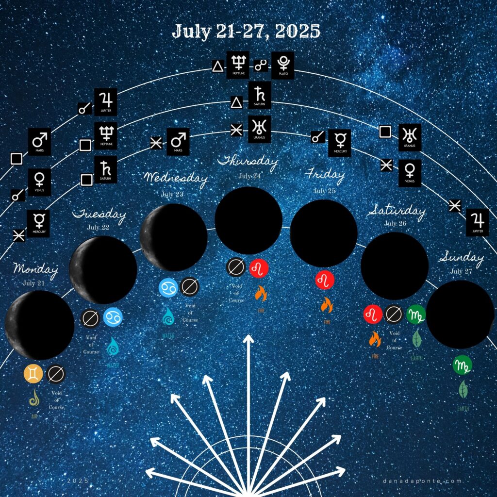 In this post, I share a summary of the moon for the week of July 21-27, 2025 as it moves through the zodiac and interacts with the planets and I show you how to work with its energy in your art journal to grow yourself or your business. I also talk about working with the magic of the Leo new moon in your art journal.
