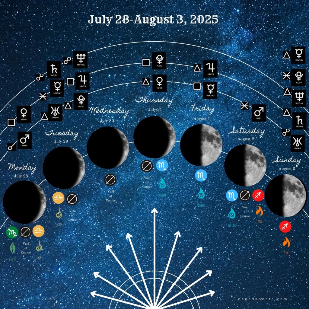 In this post, I share a summary of the moon for the week of July 28-August 3, 2025 as it moves through the zodiac and interacts with the planets and I show you how to work with its energy in your art journal to grow yourself or your business. I also talk about the magic of the moon and Venus this week and how to work with it when self-doubt creeps in and how to keep going when you feel like giving up.