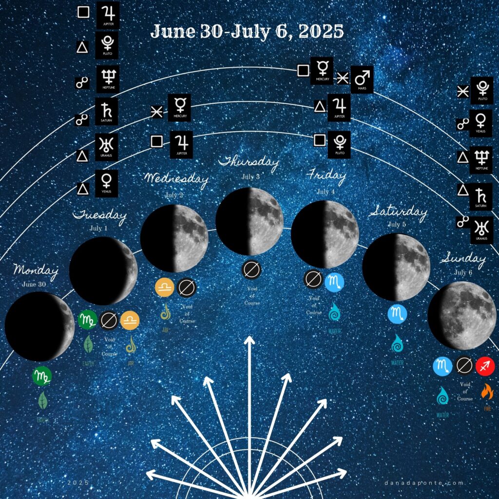 In this post, I share a summary of the moon for the week of June 30-July 6, 2025 as it moves through the zodiac and interacts with the planets and I show you how to work with its energy in your art journal to grow yourself or your business. I also talk about working with the magic of the Cancer-Capricorn polarity in your art journal.
