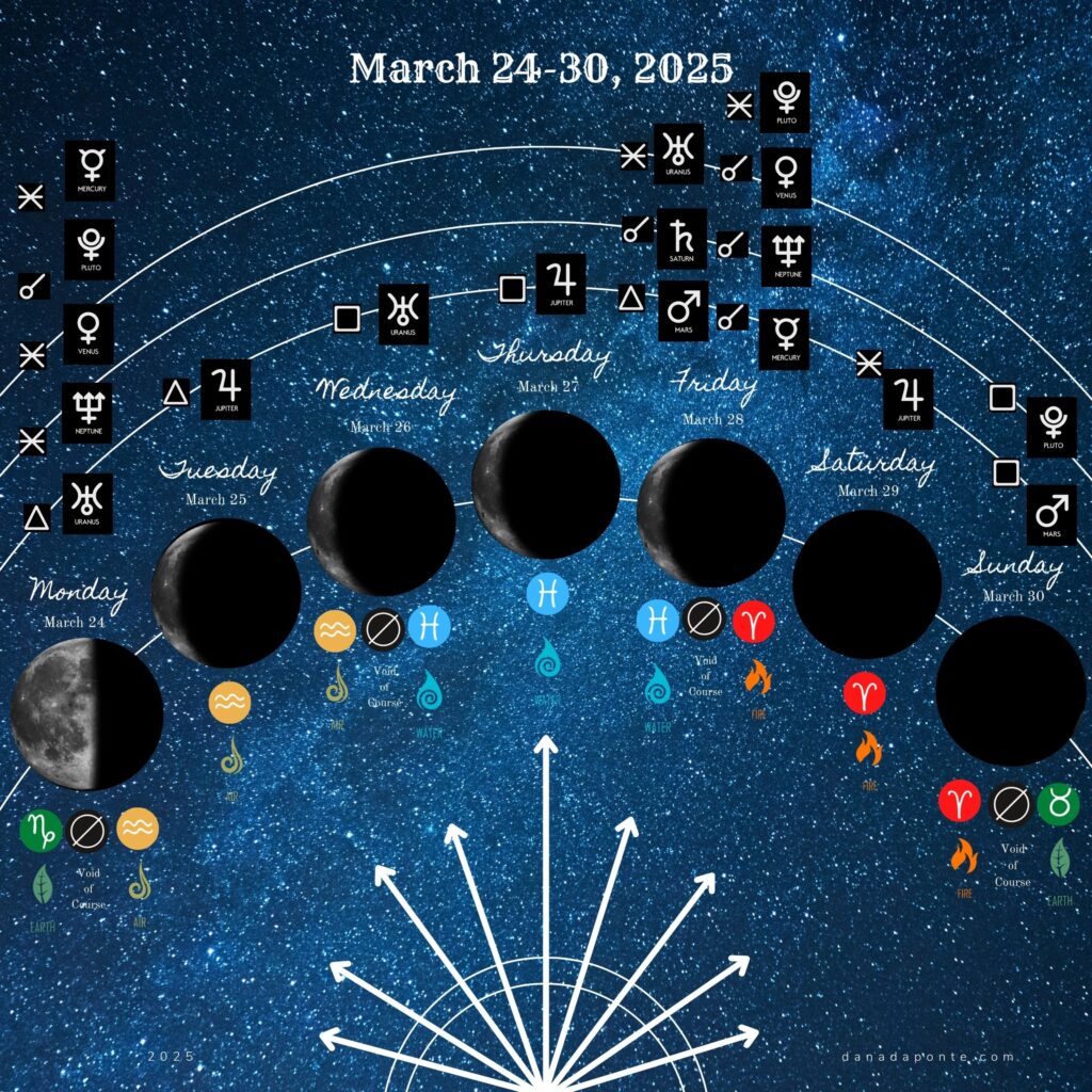 In this post, I share a summary of the moon for the week of March 24-30, 2025 as it moves through the zodiac and interacts with the planets. I also talk about working with the Aries new moon solar eclipse in your art journal to lead with your soul.