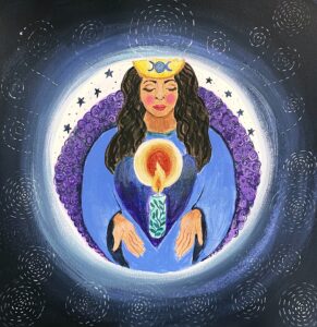 As you paint the moon in clockwise circles, feel the presence of these supportive energies. Imagine their strength and blessings flowing into the moon you’re creating. Whisper their names softly, or simply hold their essence in your heart. This is your personal journey, and there is no right or wrong way to welcome these forces into your work.