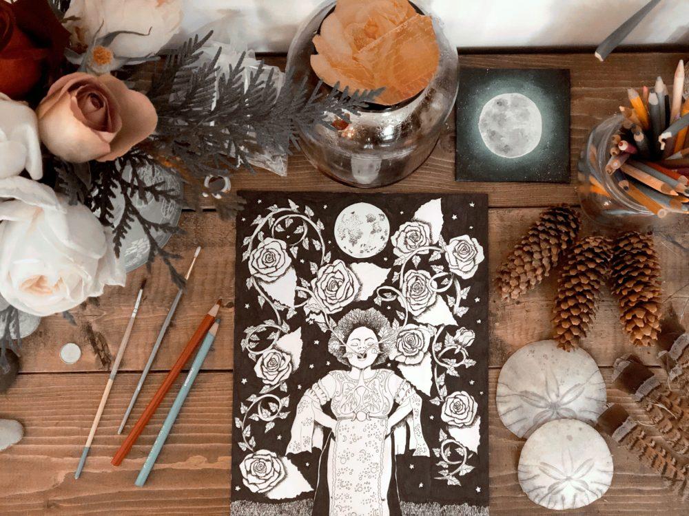 If you end up completing this spiritual art ritual, I’d love to see what you created. You can even post the finished piece on Instagram or Facebook with the hashtag #danasartrituals or email me at support@danadaponte.com and share with me how it went for you. It’s fun for me to know there are others out there enjoying the moon with me.