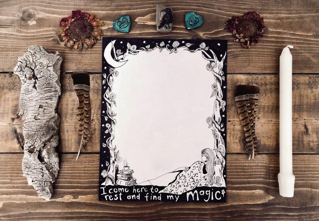 If you are not on my email list and haven’t received this month’s moon page, visit my homepage and sign up. You’ll receive a link where you can download the hand-drawn page I created for this particular moon. Print it, grab a tea and a cozy blanket, get comfortable then follow the instructions below.