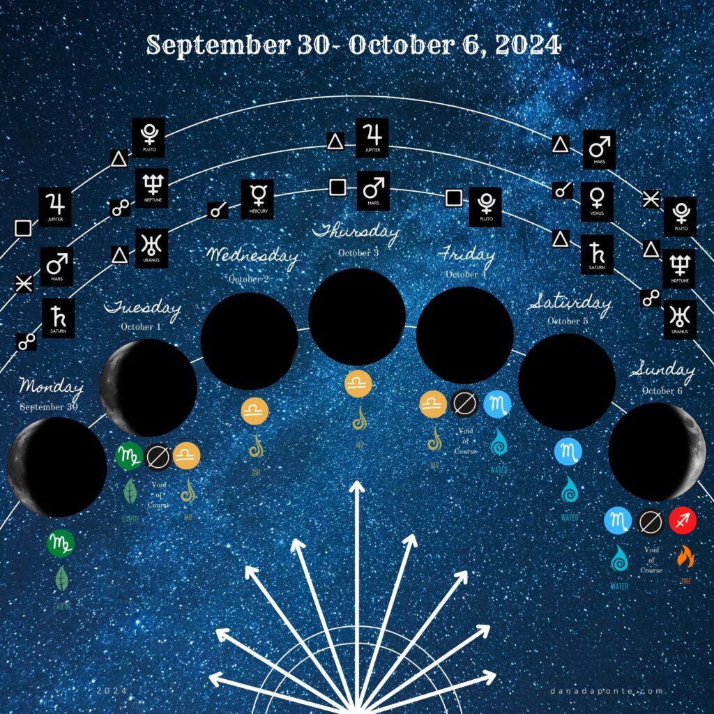 In this post, I share a summary of the moon for the week of September 30-October 6, 2024 as it moves through the zodiac and interacts with the planets. I also explain how the solar eclipse in Libra is helping you step into your inner Wild Witch energy.