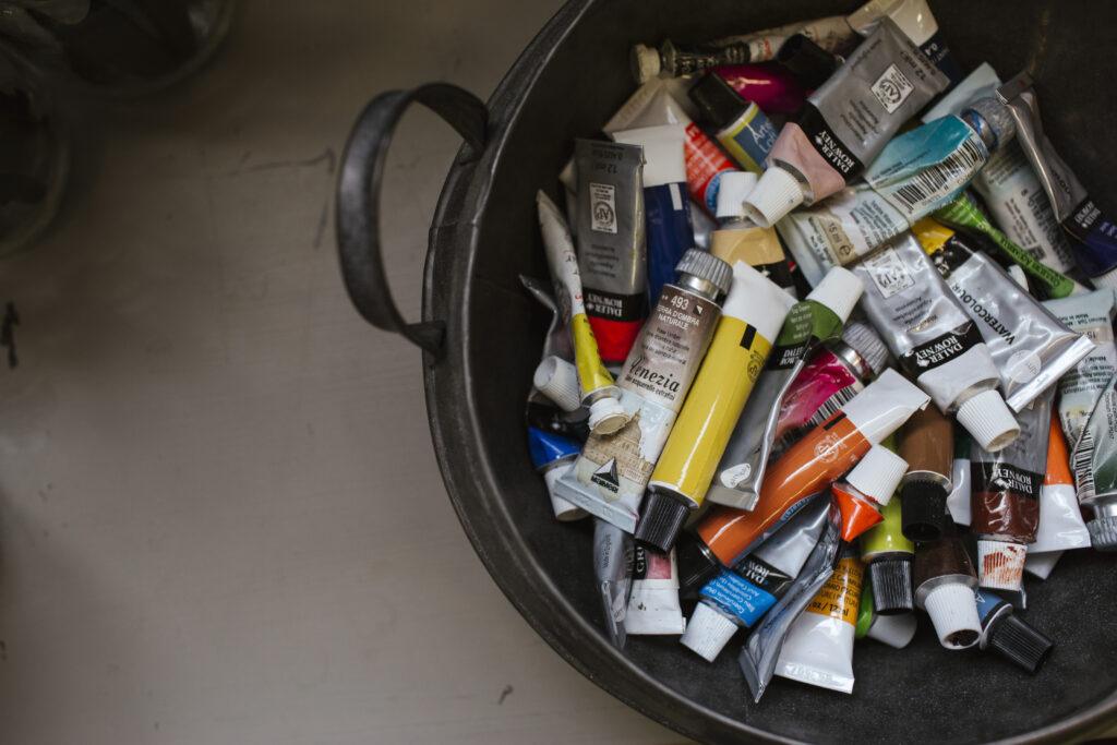 • inks, acrylic paints or watercolors in yellow, orange and red