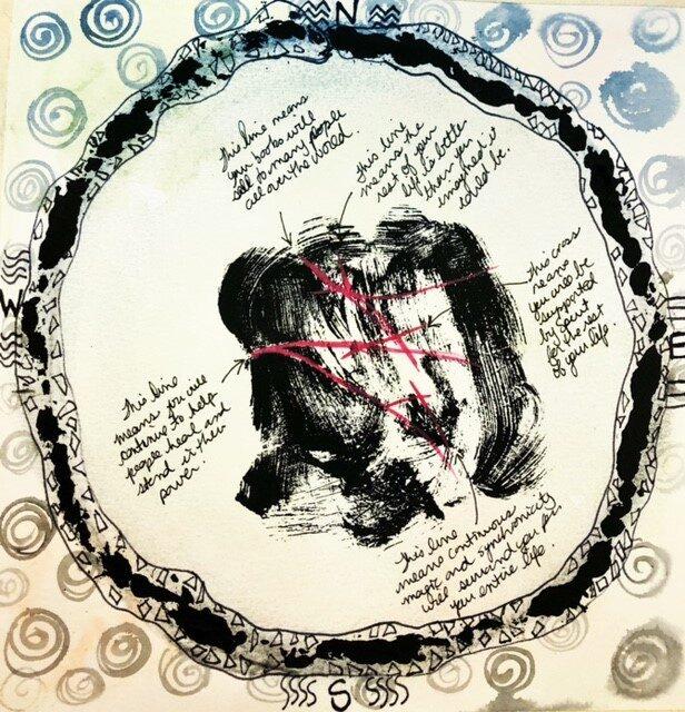 - Call in the four directions and the 4 elements and anyone from your Spirit team you want to invite to support you by drawing symbols of them around the outer edges of your paper.