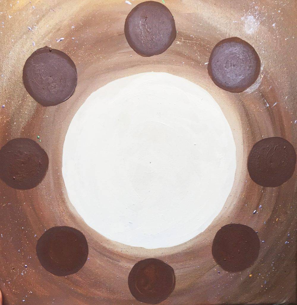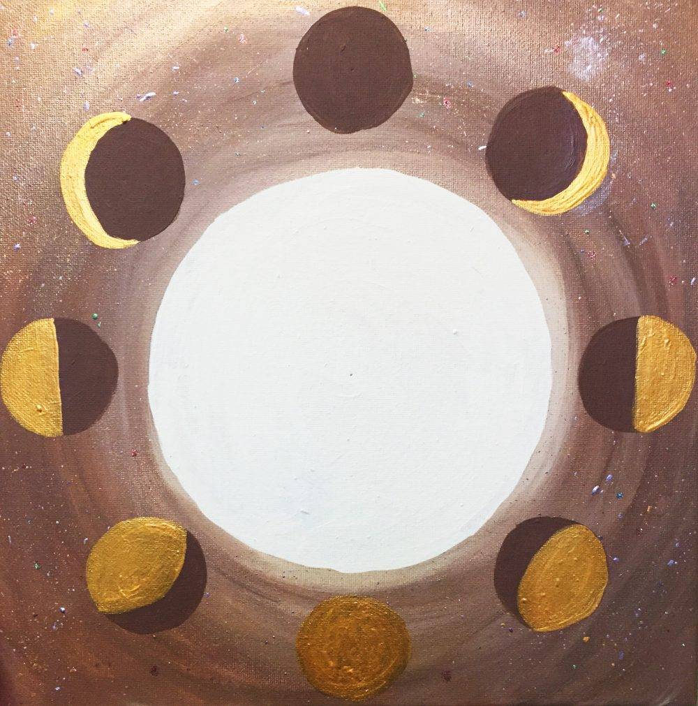 - In the smaller circles, paint the eight moon cycles.