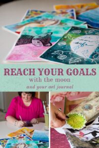 If you’re in the ART JOURNAL WITH THE MOON Facebook Community, come and share your goal with us. You don’t have to be specific publicly. You’ll want to have a clear and specific goal to work on but you don’t have to share the specifics with us. Just share the general topic. If you’re not in the Facebook Community yet, just scroll up and click on the maroon bar at the top of the page to join the group.