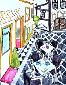 On the table of a local cafe sits our coffee cups and my paper and pencil because in this vision I’m working on my next book (I still have to finish my first one). The idea of researching and creating for my next book lights me up.