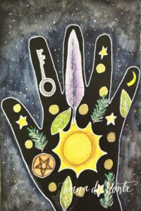 In this post, I share a step-by-step process to do that in your art journal. I also share a summary of the moon’s energy this week, giving you an overview of what to expect as the moon moves through different signs and phases. However, if you’re looking for more specific ways to work with the moon’s energy each day, be sure to follow me on Instagram, Facebook, or TikTok. There, in my videos and reels, I share daily art journal with the moon prompts that guide you in doing deep inner work or practicing manifestation magic in a creative way with the moon. You can also sign up here, to get reminders in your inbox of the moon’s energy for the upcoming week and how you can work with it in your art journal to practice folk magic, tend to your soul or do your deep inner work.