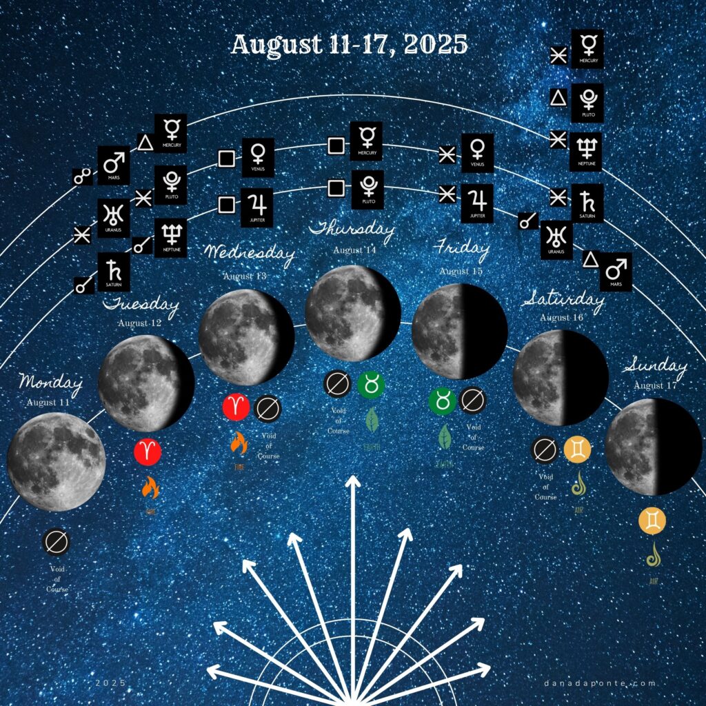 In this post, I share a summary of the moon for the week of August 11-17, 2025 as it moves through the zodiac and interacts with the planets. I also talk about astrology for highly sensitive entrepreneurs and how to work with the energy of Mercury and Mars to resolve inner conflict.