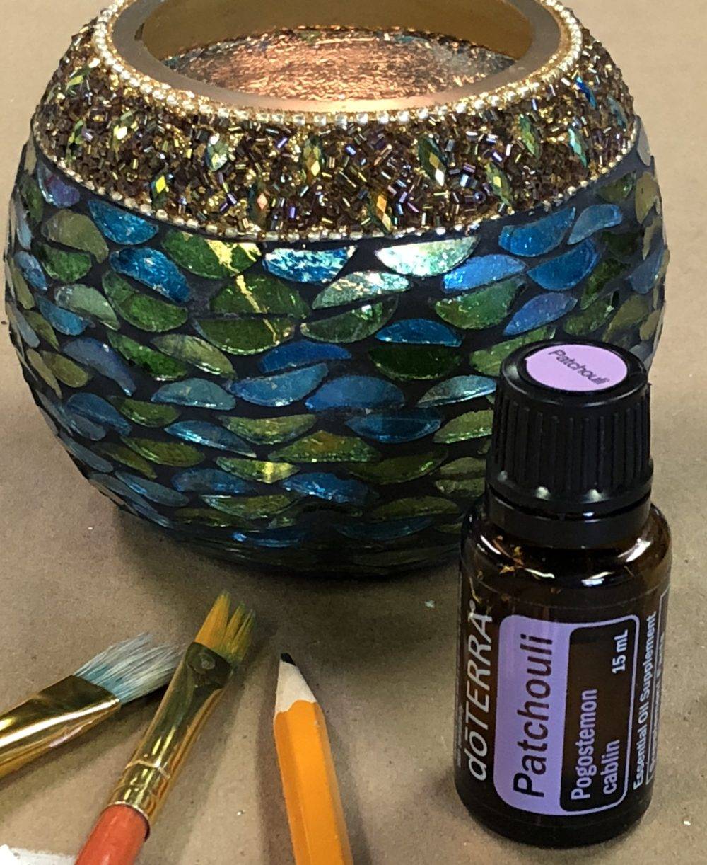 I chose Patchouli for this art ritual because one of the essential requirements for tuning in and listening to those calm wise voices within is not feeling anxious, worried or having a busy mind. Patchouli calms the mind and stills the heart and prepares the body for connecting with Spirit and/or inner wisdom.