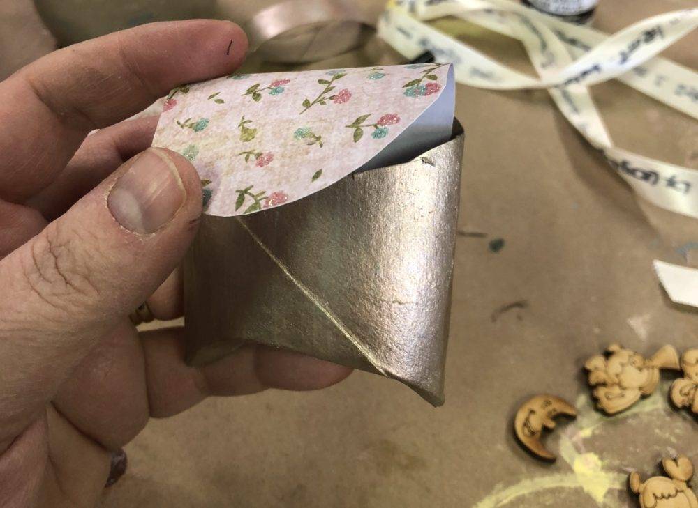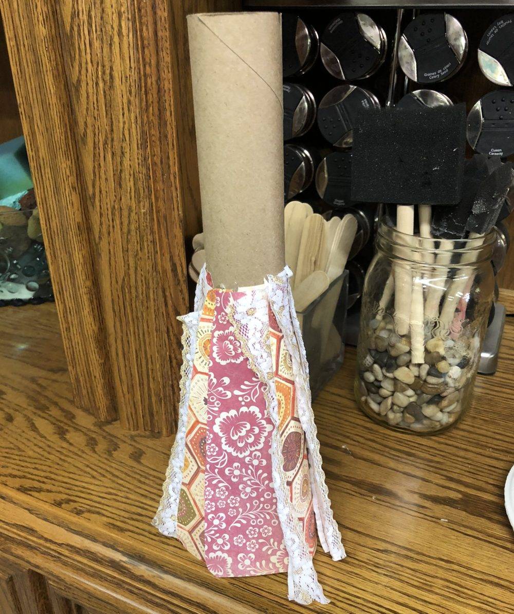 - If desired, cut strips of decorative paper to create a skirt around my paper roll.