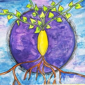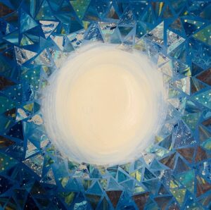 Perhaps one of the most visible circles in our lives is the moon. Its cyclical dance from new moon to full moon back to new mirrors our own rhythms—physical, emotional, and spiritual. Many nature-based spiritual practices give special reverence to the lunar cycles and I’m no exception. I art journal with the moon to time my moments of reflection, manifestation, release, and growth. By syncing my spiritual and self-care practices and rituals with the moon’s phases, I tap into a deeper, primordial energy, allowing me to harness its power and wisdom. Each moon phase represents a distinct moment in the lunar cycle, yet all are interconnected, one phase naturally giving way to the next in an eternal dance. Starting with the New Moon, the moment of being in the void, representing a clean slate, potential, and the birth of new intentions. As the moon waxes into the Waxing Crescent, the moon begins to illuminate, mirroring our growing aspirations and the initial steps toward manifesting our desires. The First Quarter Moon, with half of its face illuminated, stands for challenges and decisions, the midpoint of action, much like a crossroad. The moon continues to grow in light and power with the Waxing Gibbous phase. This phase signals refinement, adjustments, and the anticipation of culmination. Full illumination is the Full Moon. It represents completion, fruition, and realization. Emotions, intentions, and energies are at their peak. However, after the fullness comes the wane. The Waning Gibbous or Disseminating Moon begins the process of introspection, gratitude, and sharing the wisdom or harvest of the full moon. As the light diminishes with the Last Quarter Moon, it signifies release, forgiveness, and the letting go of what no longer serves, mirroring a moment of existential decluttering. The Waning Crescent or Balsamic Moon, the last sliver of light before another new moon, represents surrender, rest, and recuperation. Then, in the circle’s continuity, we return to the New Moon, starting the dance afresh. This cyclic pattern of the moon, represented by the circle, speaks of the perpetual balance between growth and decline, effort and rest, illumination and darkness. Through its phases, the moon offers a roadmap for introspection, action, and renewal, all beautifully encapsulated within the endless loop of the circle.
