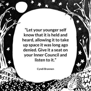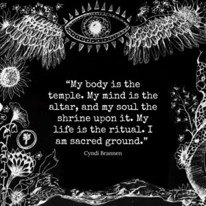 As Cyndi explains in her book, the darkness is the unconscious and the mystery. It’s where we greet our spirit allies. It’s where we purge our traumas and make space for new things to grow. It’s where we weave pieces of ourselves back together again and understand the depths of our soul. It’s where creation takes root. It’s what existed before time. It’s the womb of the Great Mother.