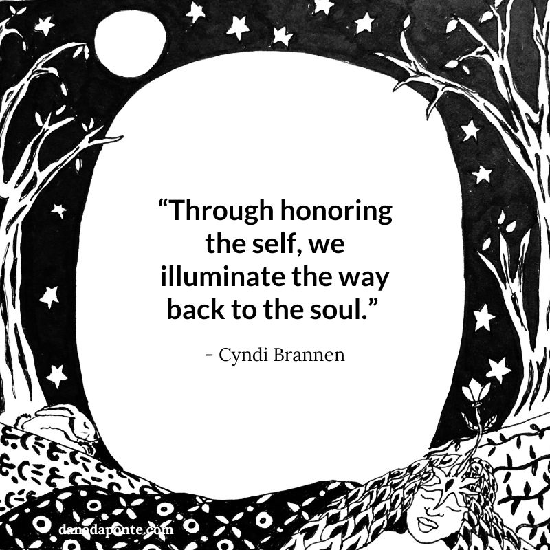 As Cyndi explains in her book, the darkness is the unconscious and the mystery. It’s where we greet our spirit allies. It’s where we purge our traumas and make space for new things to grow. It’s where we weave pieces of ourselves back together again and understand the depths of our soul. It’s where creation takes root. It’s what existed before time. It’s the womb of the Great Mother.